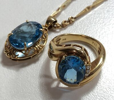 アクアマリン・メレダイヤ+K18ネックレス、リング計2点 をまとめてお買取りさせていただきました!