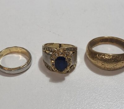 K18リング、K18xPt900コンビメレダイヤ+サファイヤリング、K18xPt900コンビリング をまとめてお買取りさせていただきました!