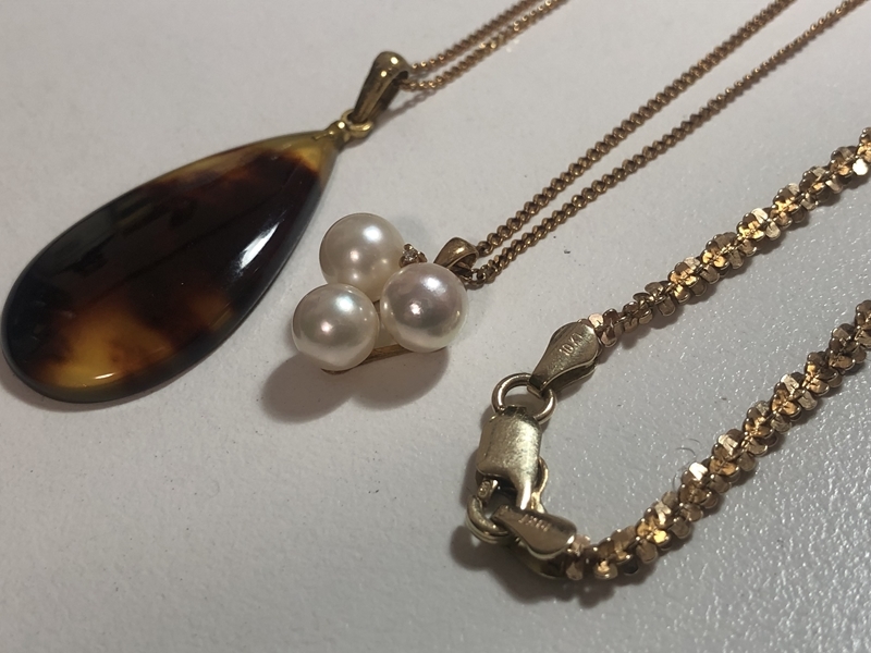 べっ甲・パールペンダントK18ネックレスx2、K10ネックレス をまとめてお買取りさせていただきました!