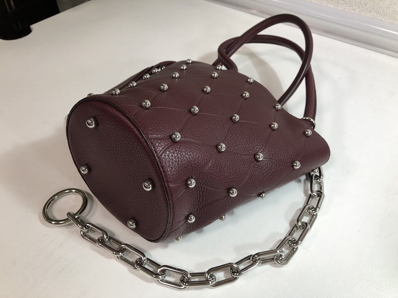 大き目のチェーンが付属し、レザー表面にはスタッズが散りばめられた、とても洗練されたデザインの小ぶりのバッグです。