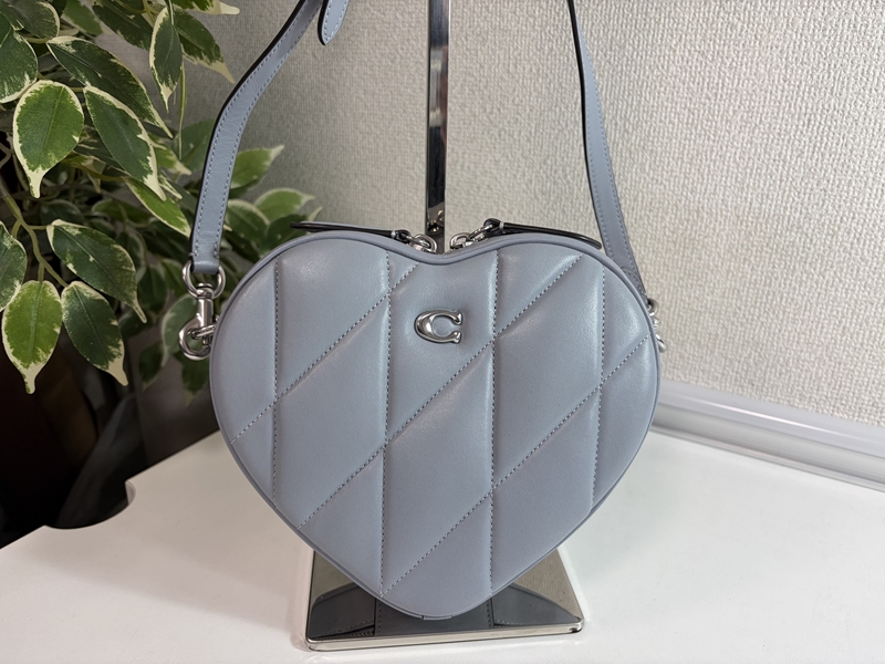 一目見て、とても可愛らしいフォルムに目がひかれる、コーチのハート型ショルダーバッグです。