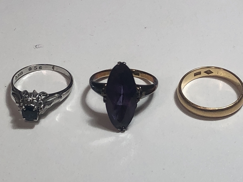 サファイア0.56ct+PT900リング、K18リング、色石+K14リング