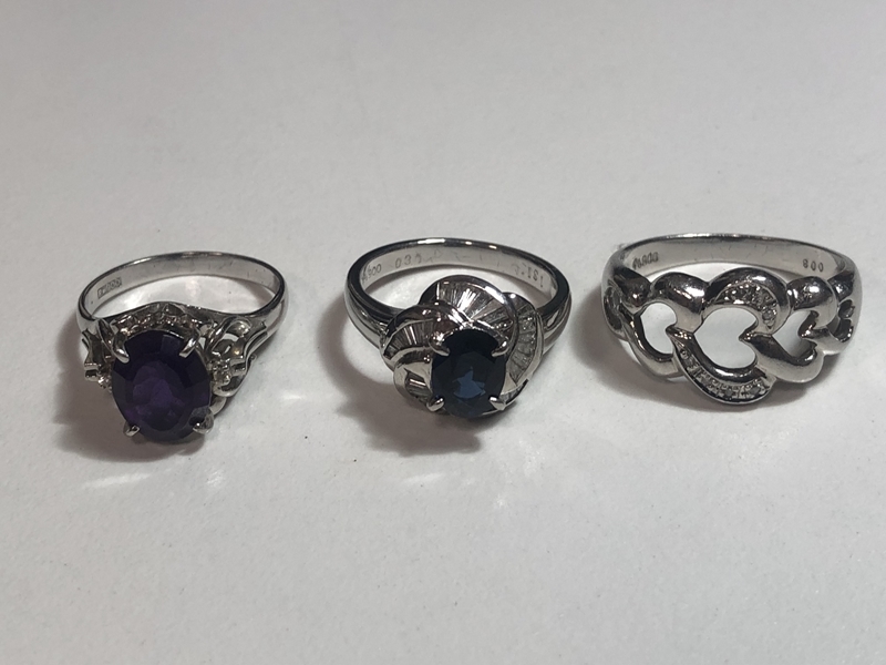 サファイヤ1.31ctメレダイヤ0.3ctPT900リング、アメジストPT900リング、メレダイヤPT900リング をまとめてお買取りさせていただきました!