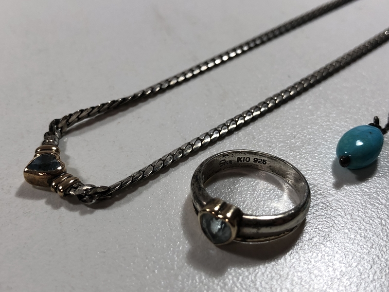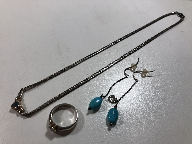 スタージュエリーK10xSV925石付きリング、SV925ネックレス、ターコイズ+SV925ピアス をまとめてお買取りさせていただきました!