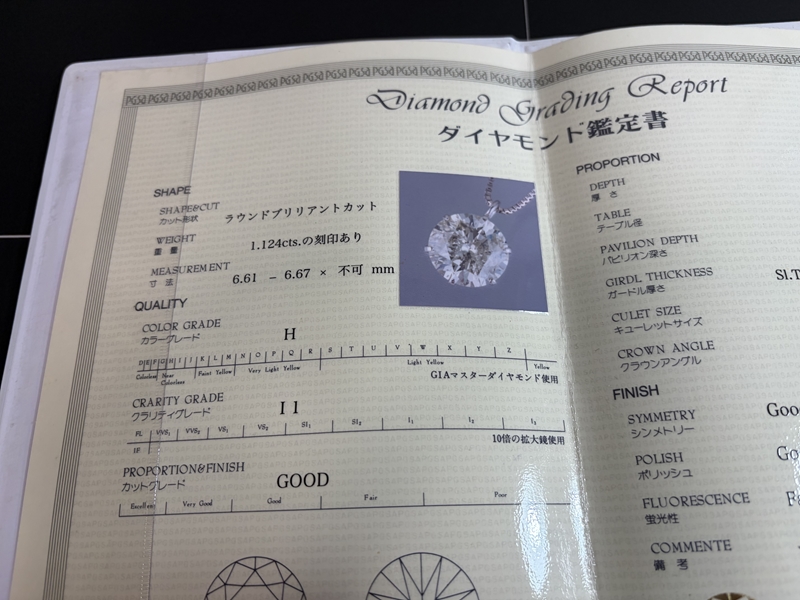 ダイヤモンド1.124ct+Pt900ペンダント Pt850チェーンネックレス をお買取りさせていただきました!