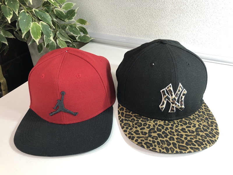 ニューエラ ヒョウ柄x黒キャップ、ジョーダン ジャンプマン赤x黒スナップバックキャップ をまとめてお買取りさせていただきました!