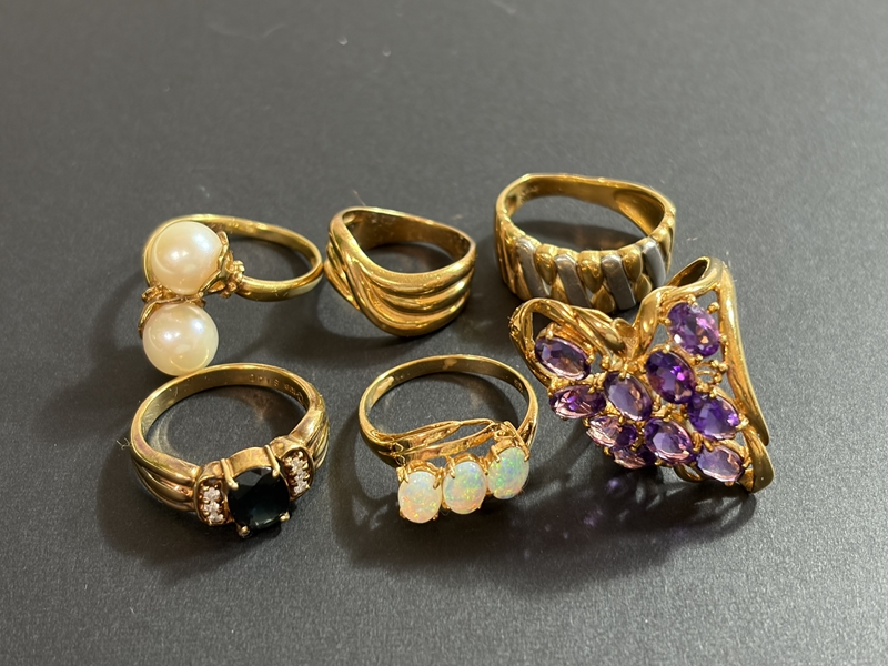 パール・色石K18リング、K18xPt900コンビリング 計6点