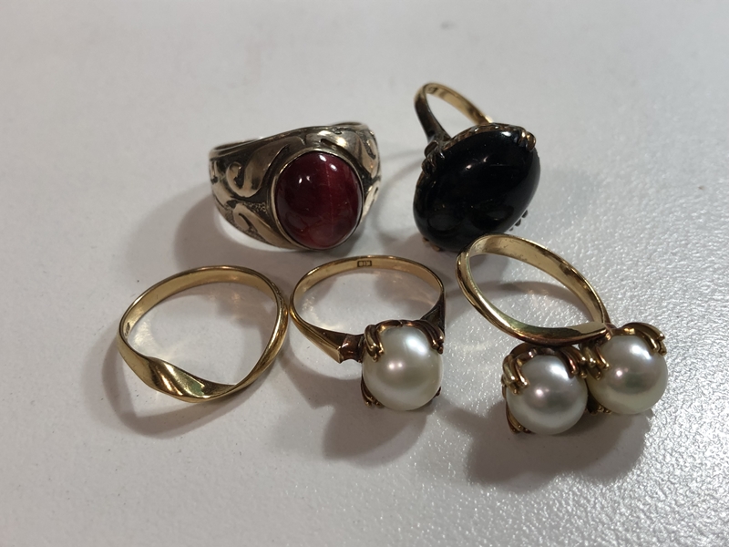 パール+K18リングx2、色石+K18リング、K18リング、色石+K14リング をまとめてお買取りさせていただきました!