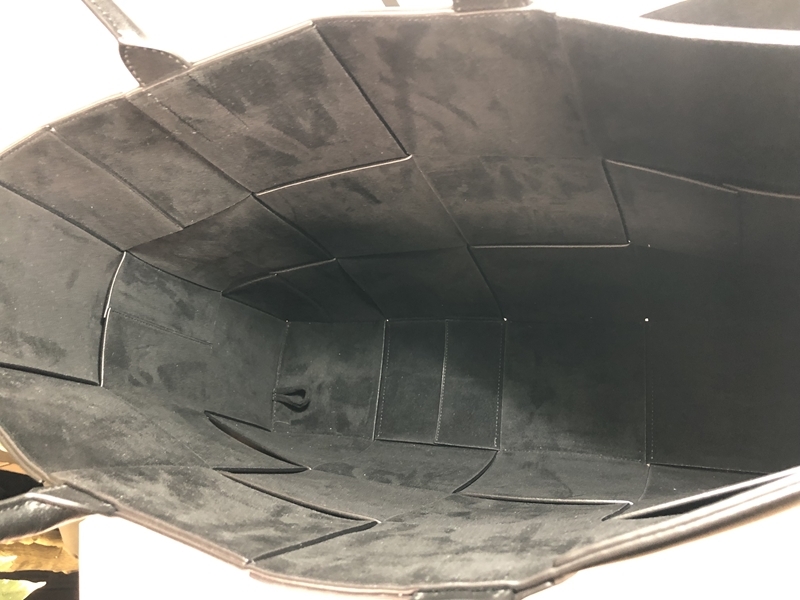 大き目の編み込みレザーがとても格好良いボッテガヴェネタのトートバッグです。