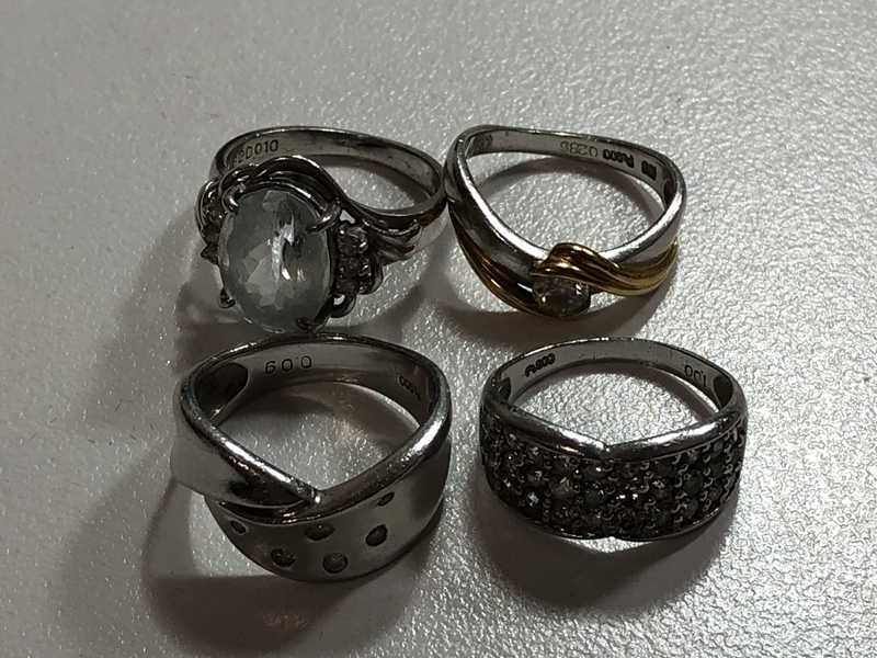 メレダイヤ・色石+PT900リング、PT900xK18コンビリング をまとめてお買取りさせていただきました!