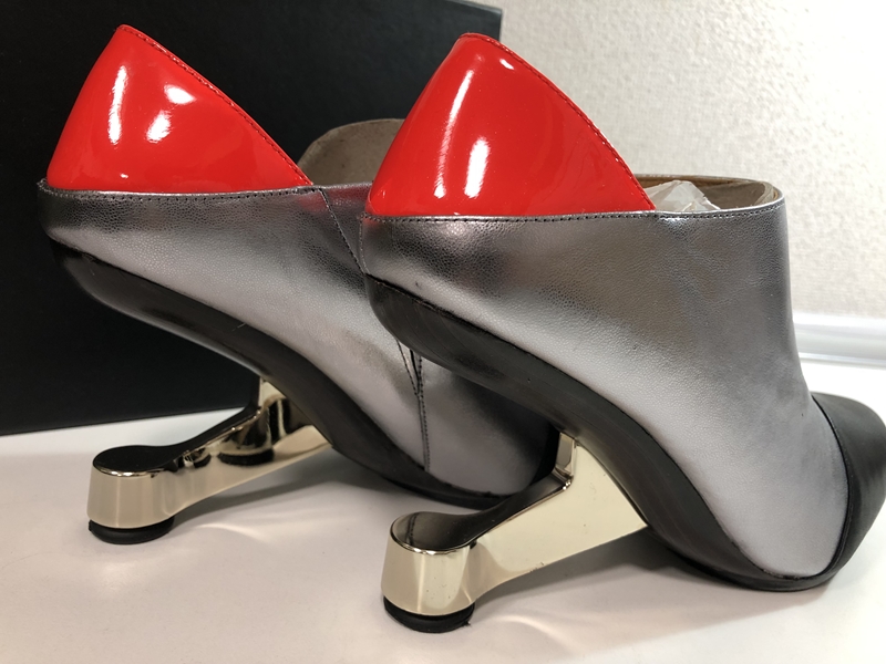 大変特徴的なフォルムとカラーリングで、他にはないオリジナリティを演出できる素敵なハイヒールです。定価はとてもお高いブランドです。