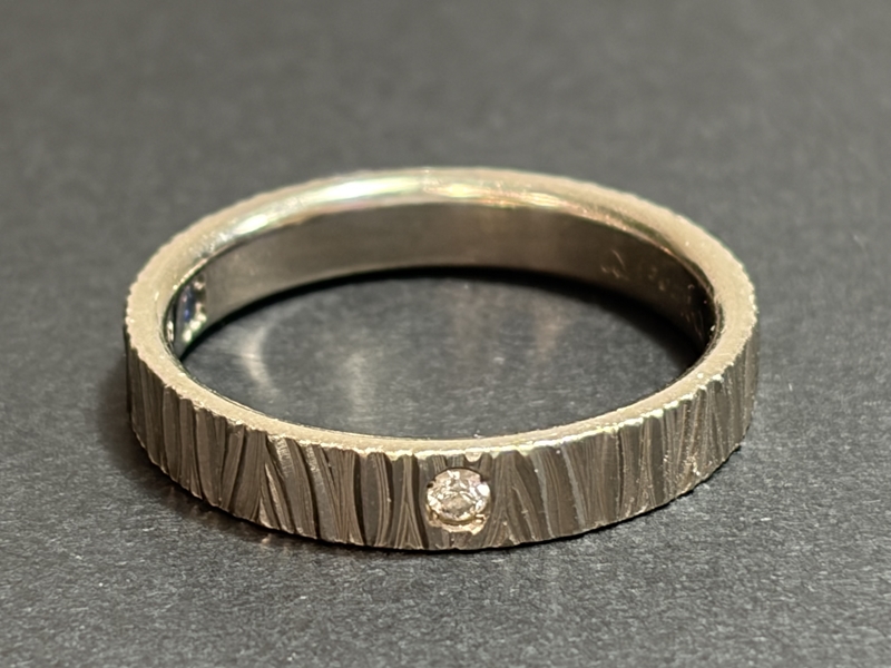 シンプルながらワンポイントのダイヤが光る、重量感もある贅沢なK18リングです。