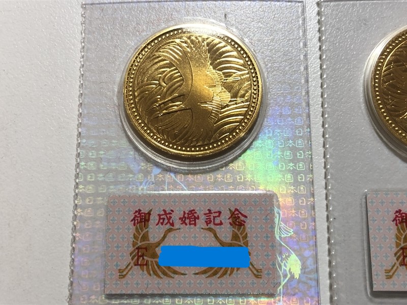 御在位60年記念10万円金貨x3、皇太子殿下御成婚記念5万円金貨x2 をまとめてお買取りさせていただきました!