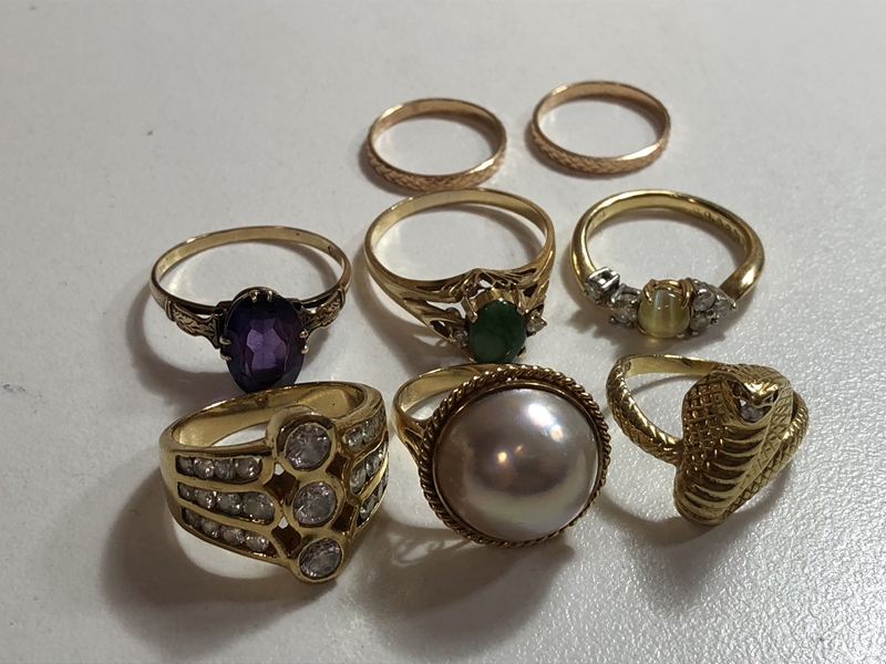 色石・メレダイヤ・パール付きK18リングx8個 をまとめてお買取りさせていただきました!