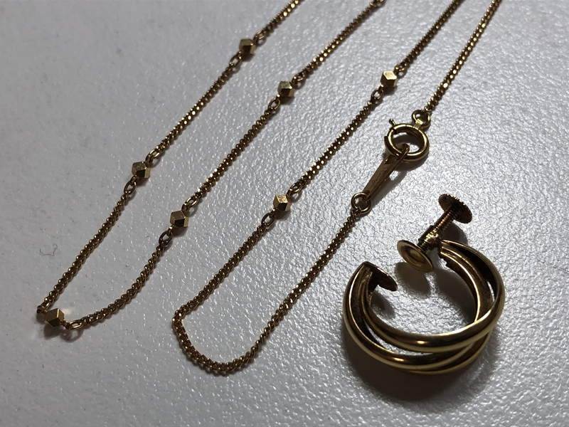 K18ネックレス、K18イヤリング(片方) をまとめてお買取りさせていただきました!