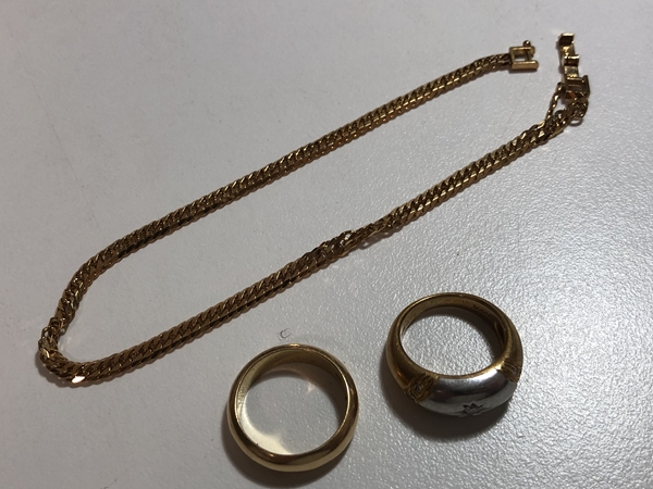 K18ネックレス、K18リング、K18xPt900コンビリング をまとめてお買取りさせていただきました!
