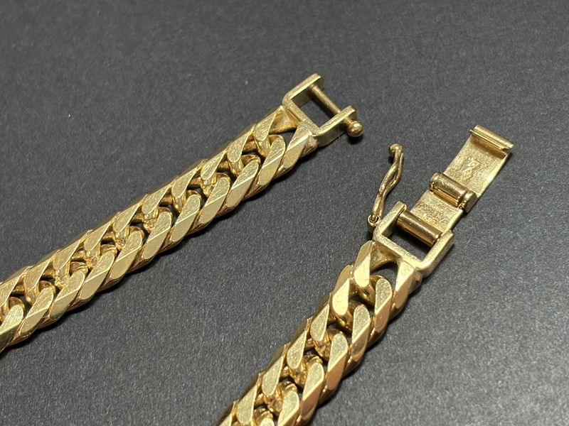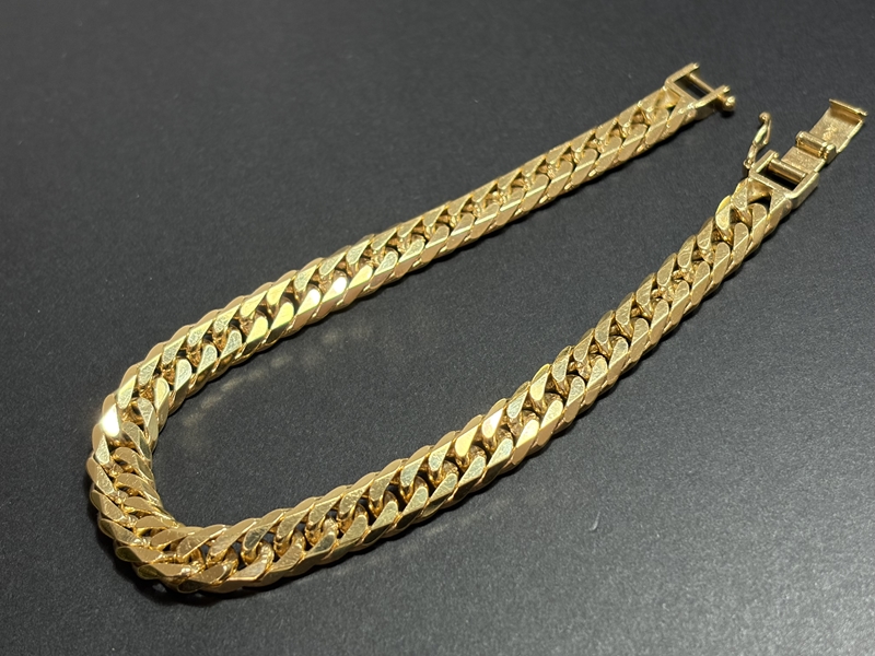 ずっしりと重量感のある18金の喜平ブレスレットで、このタイミングでの相場高騰も有り、大変な高価買取となりご満足頂けました。