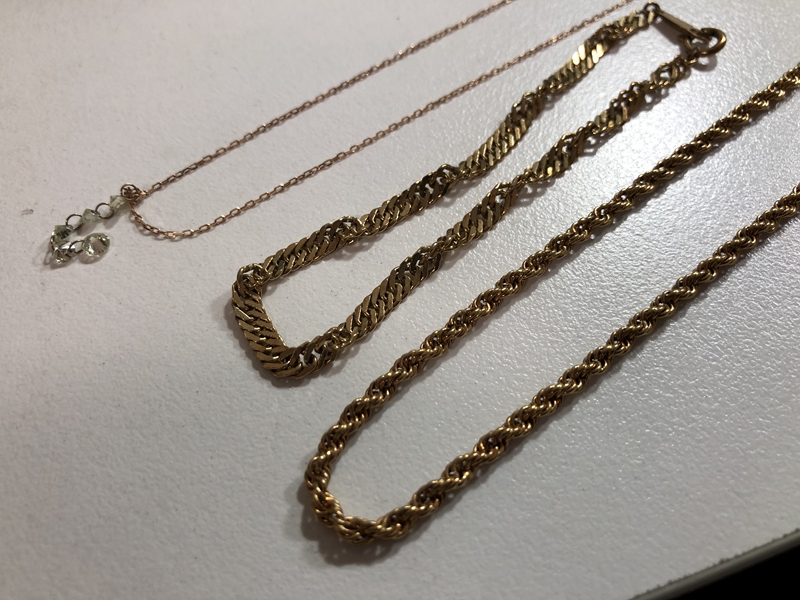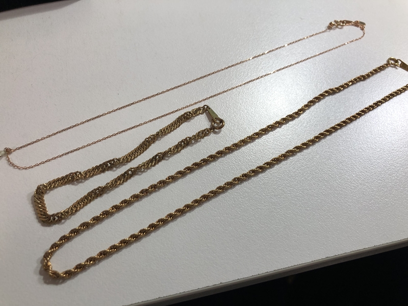 K18YGネックレス、K18PGネックレス、K18喜平ブレスレット をまとめてお買取りさせていただきました!